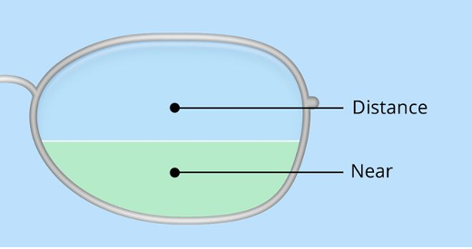 Bifocals consist of two lens powers. A small portion at the bottom part of the lens contains power that is required to correct your near vision, where the rest of the lens is usually for your distance vision. Bifocal lenses work great for a clear vision at far and near, but not the intermediate distance e.g. for your desktop or laptop work, which is widely used among people nowadays.