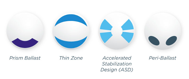 This particular design in toric contact lenses allows the correction of varying focusing power in different meridians which is found in astigmatic eyes.