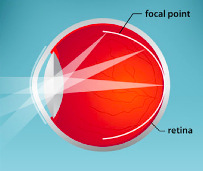 Uncorrected Myopia: In short-sighted eye, light is focused in front of the retina, causing blurry distance vision. Hence, corrective lenses are needed in order to see clearly at distance.