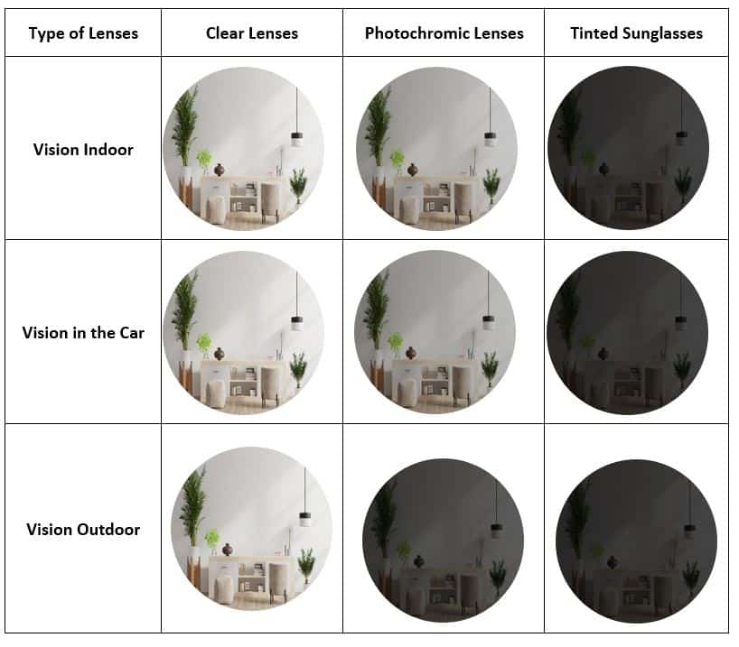 #1: Ineffective in the Car : Photochromic lenses darken and change colour in reaction to UV rays, which your car windshield blocks. Because of this, most photochromic lenses do not work very well in the car.